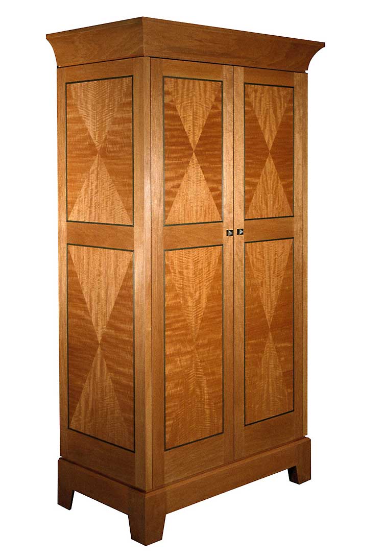 FIGURED ANIGRE ARMOIRE, METAL ACCENTS